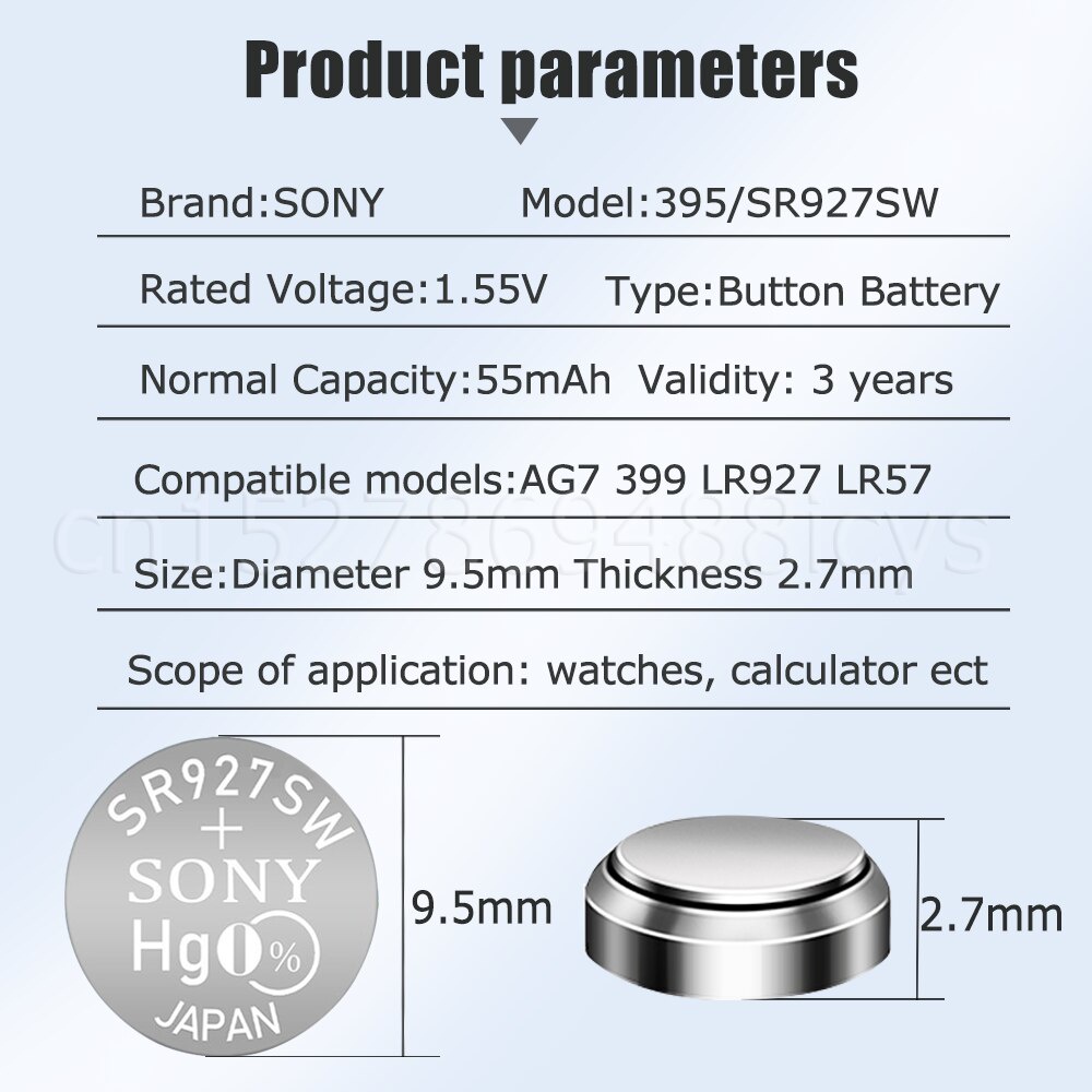 Sony 395 399 SR927SW SR927 AG7 LR927 SR927W 1.55V Silver Oxide Battery For Watch Toy Remote Control Calculator Button Coin Cell